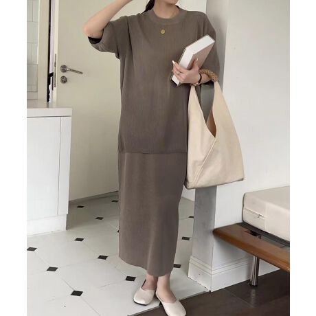 トップスは程よいゆとりで体型カバーも叶い、スカートはすっきりとしたIラインでスタイルアップ効果も◎。セットではもちろん、それぞれ単品使いも可能で着回し力抜群。