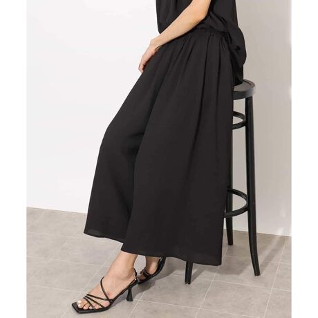 一見するとスカートに見えるボリューム感が特徴のワイドパンツ。たっぷりとギャザーを寄せてウエスト回りをカバーしながらも、すっきりと見せる分量感にこだわりました。ウエストは総ゴムにすることでリラックスした履き心地。クロップド丈で足元を気にせずアクティブに過ごせます。40サイズは限定店舗展開です。