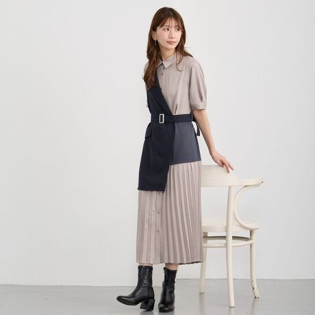 細かいプリーツが歩くたびに揺れ、一枚で女性らしい上品な印象に。