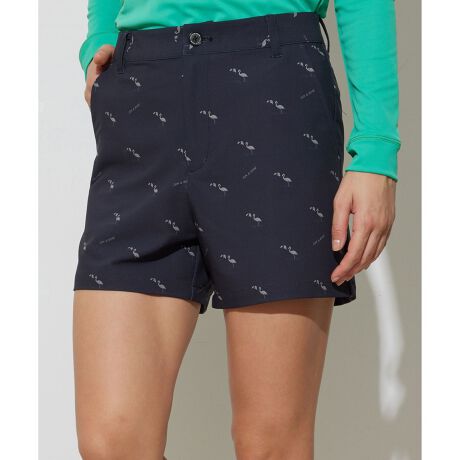 細かなフラミンゴ柄で合わせやすさもポイント。カジュアルすぎず女性らしい印象が素敵。