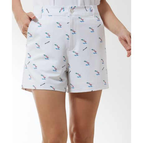 細かなフラミンゴ柄で合わせやすさもポイント。カジュアルすぎず女性らしい印象が素敵。