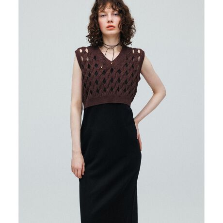 【WEB限定】・【定番人気】パターンニットジレコンビワンピース