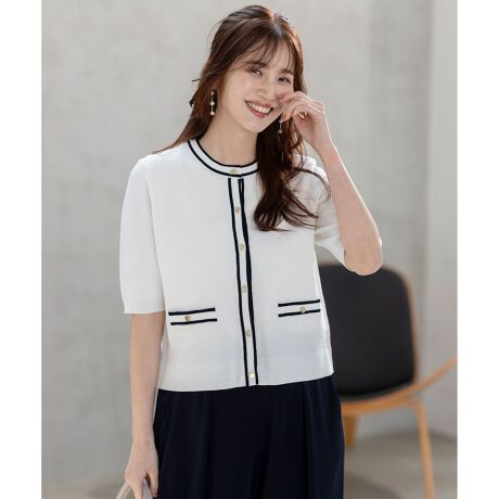 #anySiS #エニシス #エニィシス #レディース #カーディガン #バイカラー #上品 #半袖 #大人レディ #フェミニン #レディスタイル #カジュアル #カジュアルスタイル #カジュアルコーデ #休日コーデ #UVカット #機能性 #オフィスコーデ #仕事着 #洗える #ウォッシャブル