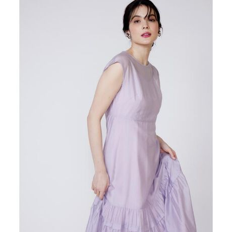 ■デザインこれからの季節にぴったりの、柔らかな透け感と繊細な凹凸のある素材を使用したワンピース。華やかなラベンダーとシックなブラックの2色展開で、フェミニンさとモードな雰囲気を兼ね備えた一枚です。肩からウエストにかけてはバックゴム仕様で、程よくシェイプされたシルエットが魅力。オフショルダー気味のデザインで、腕まわりをさりげなくカバーしつつ、抜け感のあるスタイルを演出します。スカート部分はティアードデザインで、ふんわりとした動きのあるシルエットが特徴。リラックス感のある着心地ながら、上品な印象を与えてくれます。・水洗い可・後ろファスナーあり・ペチコートワンピースつき同素材のブラウス品番:52182857■素材タテ糸には繊細でハリのある糸を、ヨコ糸には環境に優しいリヨセルを使用し、上品な透け感と表情豊かな風合いを実現した素材です。さらに、特殊なシボ加工を施すことで、ほどよい凹凸感が生まれ、やわらかなタッチとナチュラルな立体感を楽しめます。軽やかで肌なじみが良く、心地よい着用感が魅力です。■サンプル撮影商品■こちらの商品はサンプルでの撮影となっております。実際の商品とは、サイズや色味、素材、デザイン等の仕様が若干変更になる場合がございます。