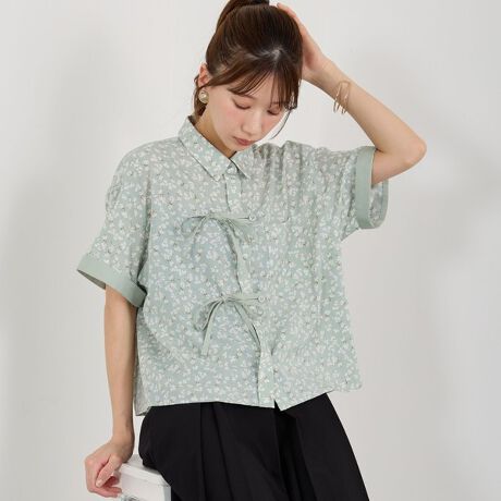 夏らしい爽やかな色合いの小花柄に配色リボンが目を惹くブラウスが登場。