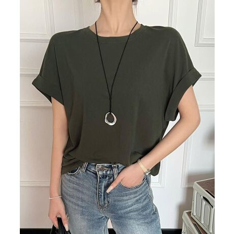 シンプルでこなれ感のあるフレンチスリーブTシャツ。ゆったりとしたシルエットで、体のラインを自然にカバーし、リラックスした印象に仕上げます。