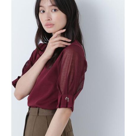 NBB人気のハトメシアースリーブニットをアップデート!袖は揺れ感のある華奢なチェーン&バーを付けて女性らしい印象と、身幅と丈感はコンパクトにして洗練された印象に仕上げています。首まわりはモックネックですっきりと演出。身頃はさらりとした透けにくい編地を、袖は柔らかくシアーな編地を使用しているので、オンオフ問わず着ていただけます。<素材>ドライタッチでキレイな目面の糸を使用。袖はシアー糸を使い、程よい透け感のある素材感です。<詳細>仕様・開閉なし裏地・なし透け感・ややあり / 光沢・なし / 伸縮性・あり生地の厚さ・普通※モデルの着用画像の場合、光の当たり具合により、実際の色味と異なって見えることがございます。色味は、商品単体の画像をご参照ください。