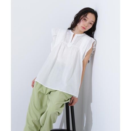 コットンボイルシャーリングブラウス