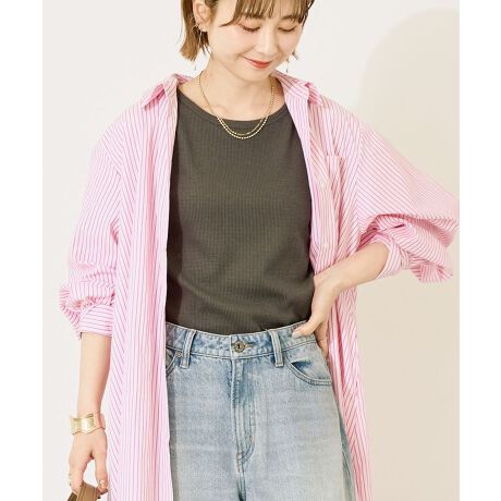 程よい肉感のあるワッフル素材のタンクトップ。胸周りや背中の空き具合は狭めで、しっかりカバーできるアイテムです。インナーとしてだけでなく、羽織りアイテムにレイヤードするのもおすすめです。透け感[なし]