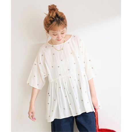 品番:25051700829020 【WEB限定】バックリボンフラワー刺繍ブラウス