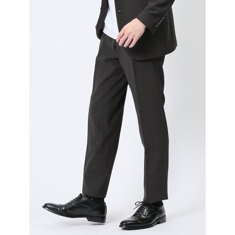 すっきりとしたノータックのテーパードパンツです。センタープレス加工により、キチンと感のあるクリーンな印象に仕上げています。裾部分は未加工です。
