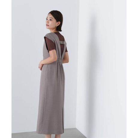 甘すぎない大人のフェミニンさを演出するジャンパースカート。ミニマルに見えてウエスト位置やシルエットに拘り、スタイルアップを叶えます。後ろはシャープに開けたVラインとストラップでバックスタイルにもデザイン性をプラス。インナーにカップ付きキャミソールなどを合わせ、ワンピースのように着こなすのもおすすめです。<素材>ややメランジ感のあるドライタッチ素材を使用しています。<詳細>仕様・左ファスナー裏地・あり透け感・なし / 光沢・なし / 伸縮性・なし 生地の厚さ・普通※モデルの着用画像の場合、光の当たり具合により、実際の色味と異なって見えることがございます。色味は、商品単体の画像をご参照ください。