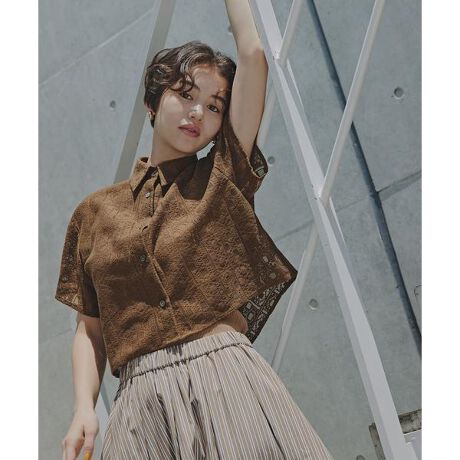 ボタンを閉めて1枚着としても、ボタンを開けて羽織りとしても活躍できる万能レースシャツです。短めの丈感なのでワイドシルエットともバランス良く着ていただけます。<素材>コットン混のさらっとした肌触りのレースを使用しています。<詳細>仕様・前ボタン裏地・なし透け感・あり / 光沢・なし / 伸縮性・なし生地の厚さ・普通※モデルの着用画像の場合、光の当たり具合により、実際の色味と異なって見えることがございます。色味は、商品単体の画像をご参照ください。