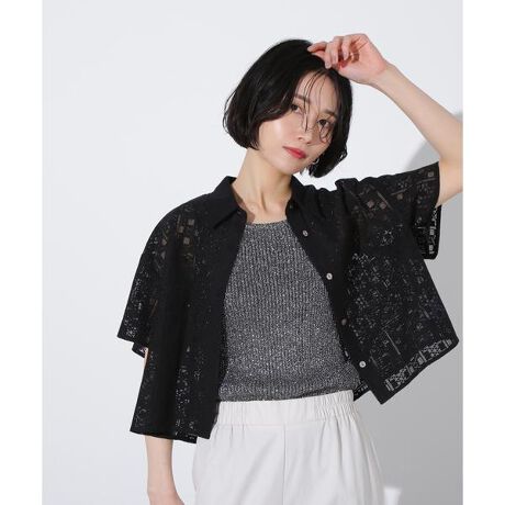 ボタンを閉めて1枚着としても、ボタンを開けて羽織りとしても活躍できる万能レースシャツです。短めの丈感なのでワイドシルエットともバランス良く着ていただけます。<素材>コットン混のさらっとした肌触りのレースを使用しています。<詳細>仕様・前ボタン裏地・なし透け感・あり / 光沢・なし / 伸縮性・なし生地の厚さ・普通※モデルの着用画像の場合、光の当たり具合により、実際の色味と異なって見えることがございます。色味は、商品単体の画像をご参照ください。