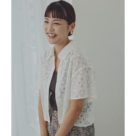 ボタンを閉めて1枚着としても、ボタンを開けて羽織りとしても活躍できる万能レースシャツです。短めの丈感なのでワイドシルエットともバランス良く着ていただけます。<素材>コットン混のさらっとした肌触りのレースを使用しています。<詳細>仕様・前ボタン裏地・なし透け感・あり / 光沢・なし / 伸縮性・なし生地の厚さ・普通※モデルの着用画像の場合、光の当たり具合により、実際の色味と異なって見えることがございます。色味は、商品単体の画像をご参照ください。