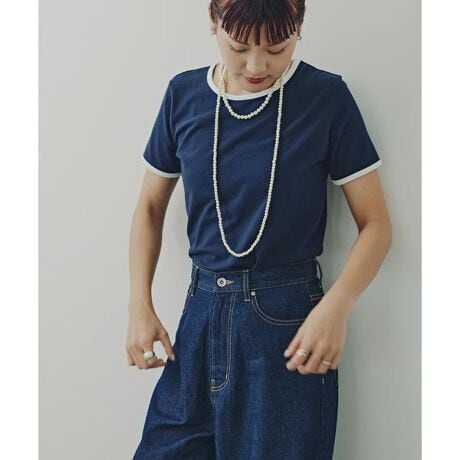 襟と袖口にバイカラーのバインダー仕様をあしらった大人カジュアルなTシャツ。コーディネートに取り入れやすいカラーなので、シンプルなボトムスと合わせるだけで決まります。ロゴTとは違うバリエーションとしておすすめ。コンパクトなサイズ感なのでジャンスカやキャミワンピースのインナーにも着ていただけます。<素材>オフカラーでも透けにくい肉感で、伸縮性のあるベア天竺素材を使用。<詳細>仕様・開閉なし裏地・なし透け感・なし / 光沢・なし / 伸縮性・あり生地の厚さ・普通※モデルの着用画像の場合、光の当たり具合により、実際の色味と異なって見えることがございます。色味は、商品単体の画像をご参照ください。