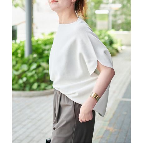 身体のラインを拾わない綺麗なシルエットが好評なボートネックプルオーバー。