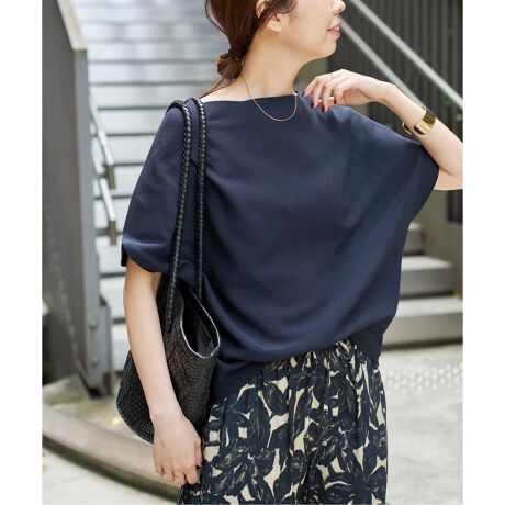 身体のラインを拾わない綺麗なシルエットが好評なボートネックプルオーバー。