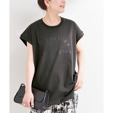 肌触りの良い滑らかな生地感と、大きすぎないフォントで大人っぽい印象のロゴTシャツです。肩と袖に切り替えがないデザインにし、フレンチスリーブのすっきりとした女性らしいシルエットになっています。