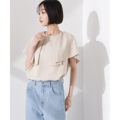 シンプルながらも存在感のある可愛さと上品さを兼ね揃えたブラウス。すっきりと見えるシルエットで、穏やかに広がるフレアスリーブが腕まわりも華奢見え◎。オンオフ問わず、幅広いスタイリングに合わせやすい一枚です。