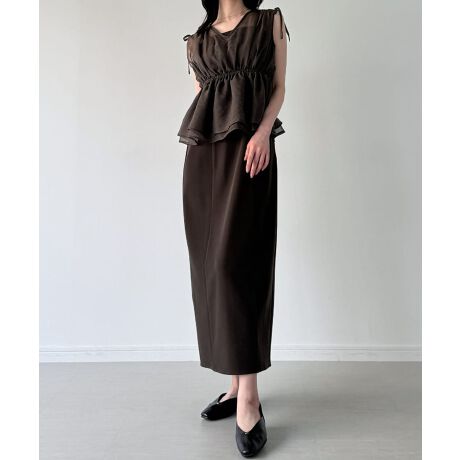 肩リボンシアーベスト + キャミワンピース set(薄手、裏地なし)