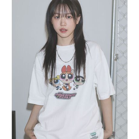 DISCUS×パワーパフガールズクルーネック半袖ピグメントTシャツ