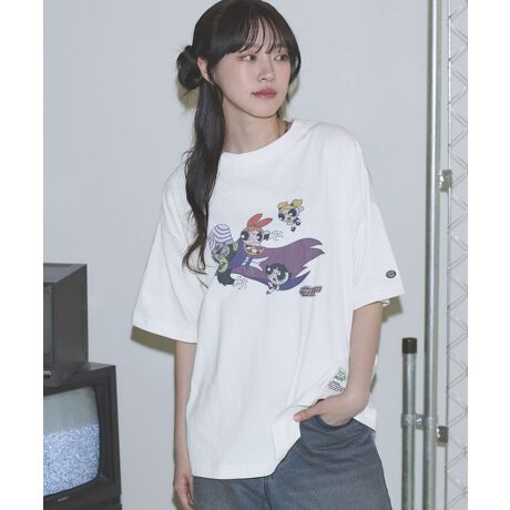 DISCUS×パワーパフガールズクルーネック半袖ピグメントTシャツ