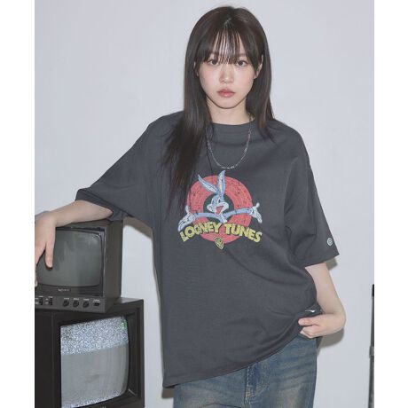 DISCUS×Spacejam/LOONEY TUNESクルーネック半袖ピグメントTシャツ