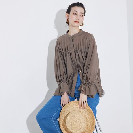 [型番:32506010001]*Detail*ふんわりと軽やかなエアリー素材を使用。前後のギャザーが自然な立体感を生み、女性らしい印象に。織りとしても活躍し、着こなしの幅が広がる一枚。*Coordinate*シンプルなタンクトップと合わせて、リラクシーなレイヤードスタイルに。スラックスと合わせれば、きちんと感のあるオフィス仕様にも◎デニムでカジュアルダウンすれば、週末の大人カジュアルにもマッチします。