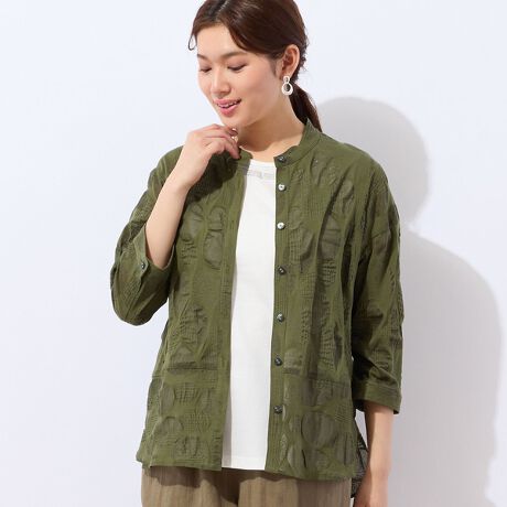生地表面にポコポコとした凹凸感を出したコットンシャツ。