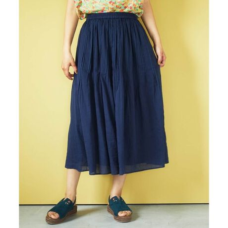 素材を活かした着回し力抜群なスカート。トップスにはホコモモラの柄物トップスとも好相性です。Tシャツと合わせた大人カジュアルコーデもオススメ。同素材のブラウス【GJBGB42200】とのセットアップも可能です。