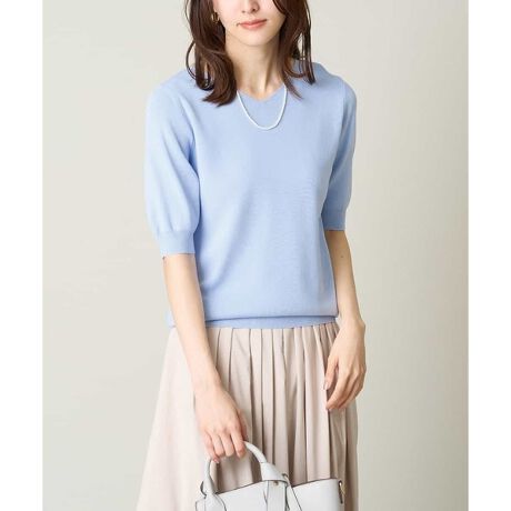 ◆ボートネックパフスリーブサマーニット:K2FGV69039
