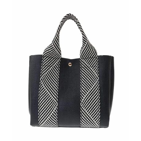 カゴバッグ風の編みデザインを型押しとプリントで表現した、お洒落なデザイントートです。