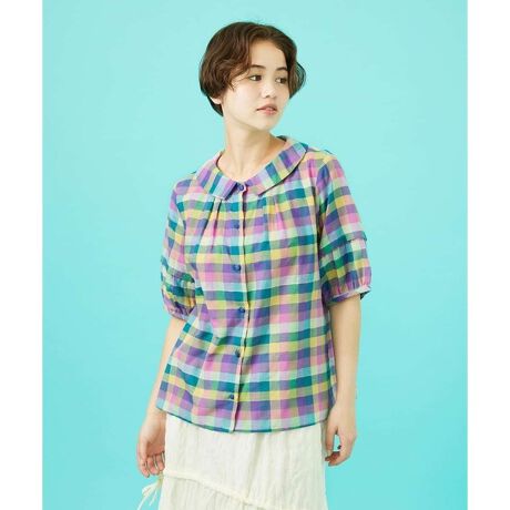 チェックが印象的なブラウスは無地のボトムスとの相性が抜群。前開きで羽織りとしての着用もオススメです。