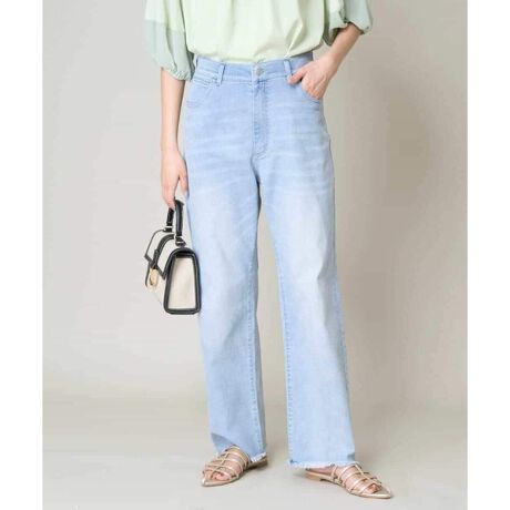【接触冷感/マシンウォッシャブル】ストレッチデニムストレートパンツ