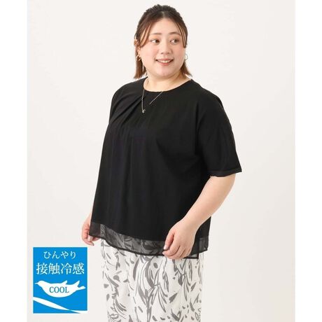 【大きいサイズ/接触冷感】シルケット天竺タックカットソー