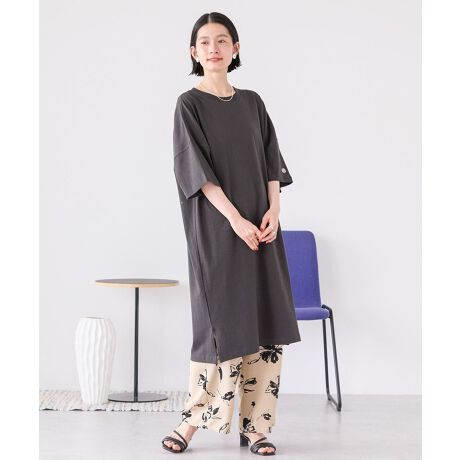 ゆったりとしたシルエットでラフに着られるワンピース。裾のサイドスリットで抜け感をプラスしました。さらっとした肌触りのコットン素材で着心地も抜群。シンプルかつ長すぎない丈感なので、1枚で着るだけでなく、デニムパンツとのレイヤードスタイルも楽しめます。透け感[なし]