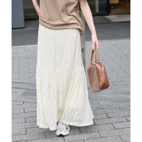 ゆったりしたスウェットやニットなどのトップスやシャツなどのハリ感があるものと合わせてもバランスが取りやすく、着回し力のあるスカートです。