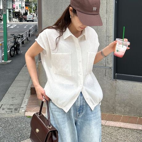 ・程よい透け感で清涼感漂うフレンチタックシャツです