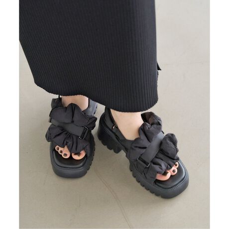 中綿を入れたフリルのボリューム感がかわいいサンダル。