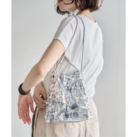 スパンコールをふんだんに使用したキラキラ輝く巾着タイプのスパンコールバッグ。