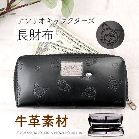 【人気のキャラクターデザイン】大人気なサンリオキャラクターを採用♪大人可愛い長財布が新発売。【可愛いけど上品さもあり】ワンカラーの本革にキャラクターモチーフのエンボス加工で派手過ぎず大人でも持てる上品さ【キャラクターのロゴ入り】表面のパッチにはキャラクターのロゴを取り入れ、小さな所までキャラクターの世界観を♪【収納力抜群】カード収納やお札入れを複数搭載。小銭入れもあり、ママや主婦さんも満足な作りに。【大容量なカードポケット】カード収納は計14個あり、普段使うカードはもちろん、診察券やポイントカードもひとまとめ【領収書やチケット入れに】お財布の両サイドにフリーポケットを配置。領収書やチケットなど分けて収納できる。【出し入れしやすい】ラウンドファスナーを採用し、ガバッと大きく開く作りに。出し入れしやすくお会計もスムーズ。【引っかからないファスナー】開口部や小銭入れのファスナーは、引っ掛かりが少なくスライドしやすいYKK社製。【可愛いパッケージ入り】キャラクターのイラストとロゴが描かれた化粧箱入りで大切な人へのプレゼントにも☆【ポケット仕様】カードポケット×14、お札入れ×3、フリーポケット×2、小銭入れ×1