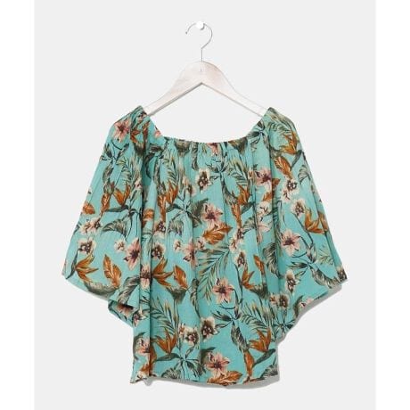 ハワイを感じさせるカラフルさと、ボタニカル柄の2wayトップス。肌に張り付かずさらりとした着心地の綿レーヨンのクレープ素材は、暑い時期にぴったり。スカートやワンピースとのセットアップにも。