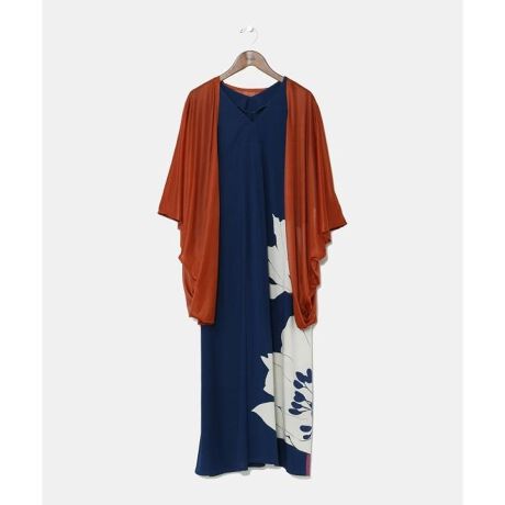 ノースリーブワンピースと振袖風羽織のセットアップ。UVカット加工をほどこした羽織には、上品な光沢感と透け感があり、さらりと着こなせます。それぞれ別のアイテムと組み合わせることで、コーディネートの幅が広がります。