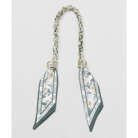 チェーンと布使いがおしゃれな組み合わせのショルダーベルト。いつものバッグを簡単に着せ替え、レディライクにイメージチェンジ。存在感もアップ。また、スマホストラップとしてもお使いいただけます。ちょっと人と差を付けたい方におすすめです。