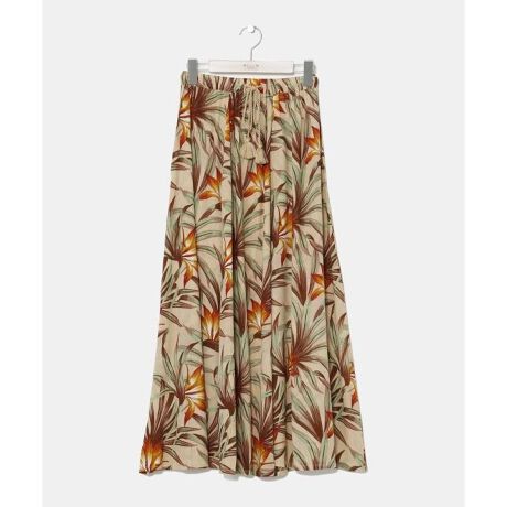 [型番:4IA-5243-2025]ハワイを感じさせるカラフルさと、ボタニカル柄のスカート。肌に張り付かずさらりとした穿き心地の綿レーヨンのクレープ素材は、暑い時期にぴったり。スカートやワンピースとのセットアップにも。