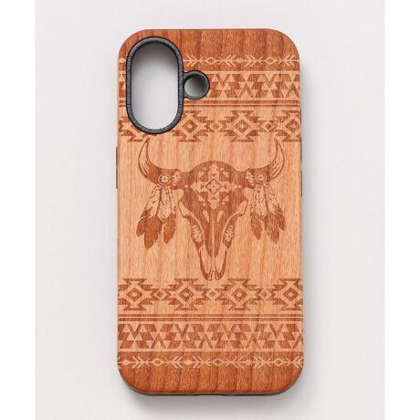 [型番:ASJP5206-2025]なめらかな手ざわりと美しい木目。強度のあるウッドにネイティブアメリカンの体表的なモチーフをあしらったスマートフォンケース。ナチュラルな風合いが魅力的。対応機種:iPhone16対応機種:iPhone16