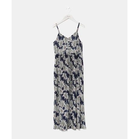 ハワイを感じさせるカラフルさと、ボタニカル柄のキャミワンピース。肌に張り付かずさらりとした着心地の綿レーヨンのクレープ素材は、暑い時期にぴったり。肩紐は長さの調節可能。上にトップスを重ね着しても。