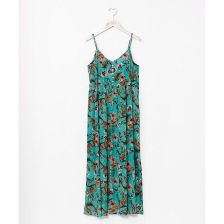 ハワイを感じさせるカラフルさと、ボタニカル柄のキャミワンピース。肌に張り付かずさらりとした着心地の綿レーヨンのクレープ素材は、暑い時期にぴったり。肩紐は長さの調節可能。上にトップスを重ね着しても。