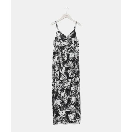 ハワイを感じさせるカラフルさと、ボタニカル柄のキャミワンピース。肌に張り付かずさらりとした着心地の綿レーヨンのクレープ素材は、暑い時期にぴったり。肩紐は長さの調節可能。上にトップスを重ね着しても。